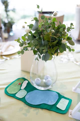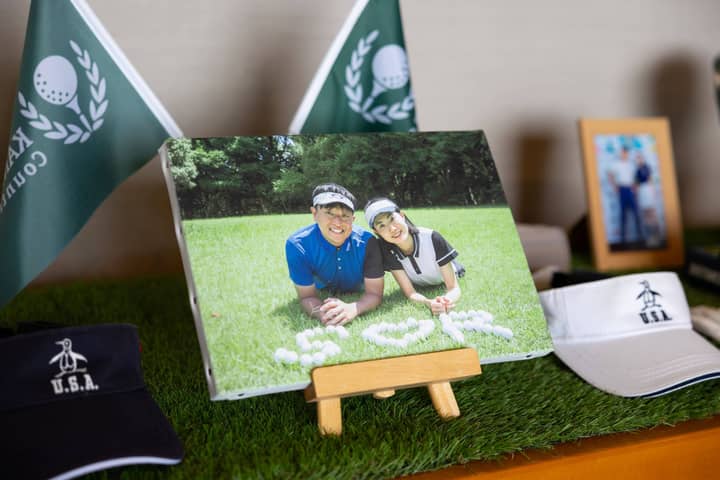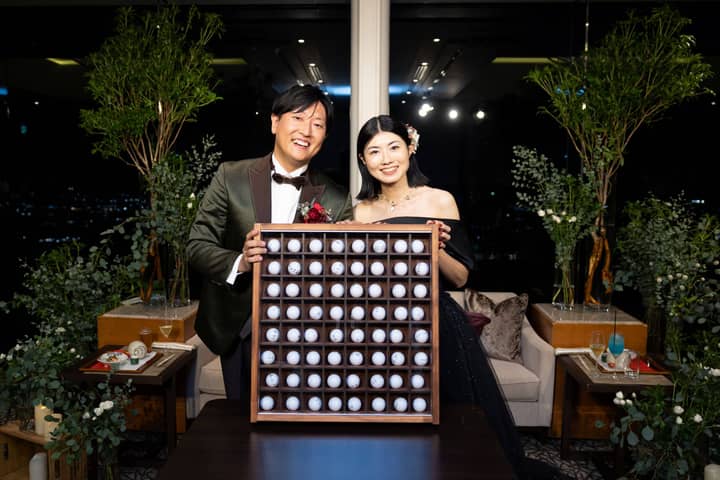 さらに受付ではゲストの皆様にゴルフボールにサインを書いていただく「ゲスト参加型証明書」にご協力いただきました。その後披露宴内で仕上げにおふたりのサインボールをお入れし完成!ご結婚式後も皆様との思い出が形に残る素敵なアイテムが出来上がりました。